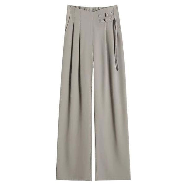 レディース パンツ ワイドレッグパンツ ロング丈 ストレートパンツ ワイドパンツ 中華風バックル 無地 春 夏