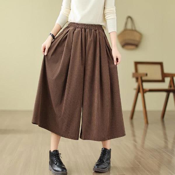 レディース ボトムス ロング丈 スカート風 ワイドパンツ コーデュロイ ウエストゴム カジュアル 無地 Aライン ゆったり 大人 ...