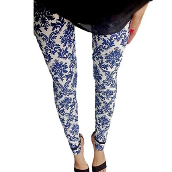 レディース デニム風 花柄 レギンス ワンサイズ 2カラー ストレッチ素材 オールシーズン おしゃれ 伸縮性 ダンス ヨガ 動きや...