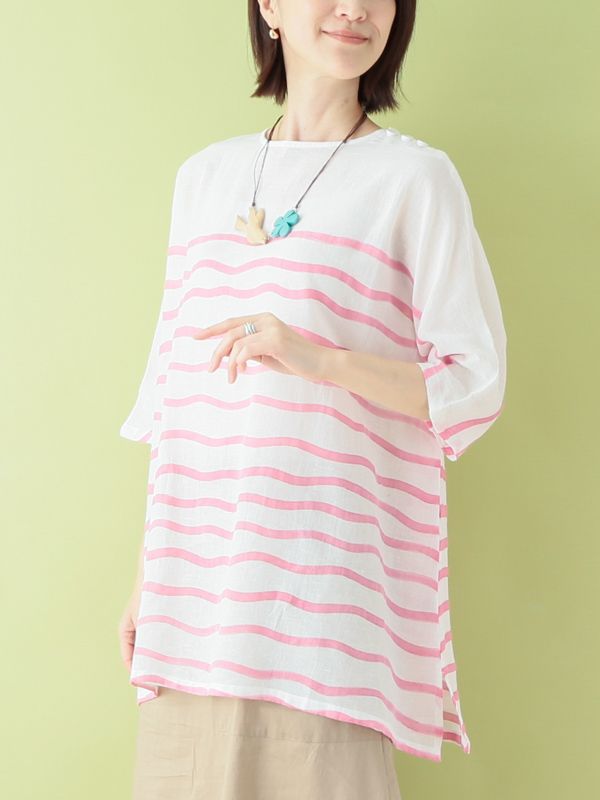 【30%OFF】ピンク2点限り/手描きボーダープリント チュニック
