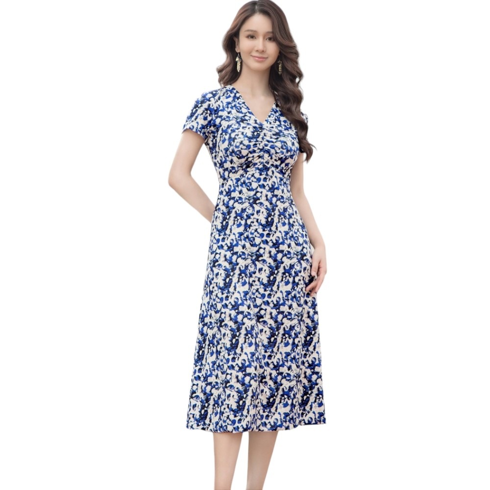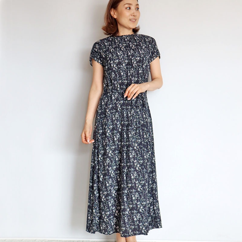 フラワープリントギャザーワンピース/BLUE FRONCE 9274