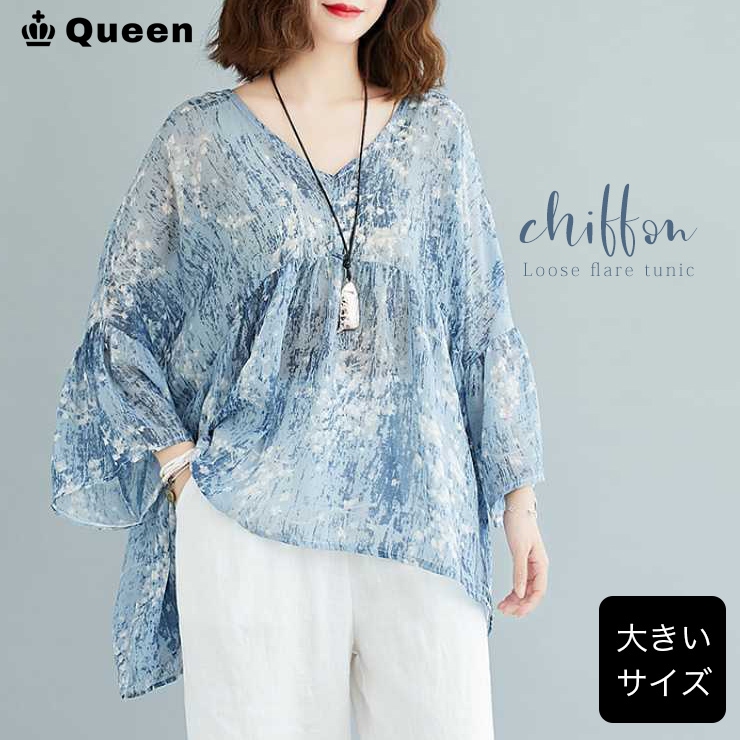 アート風ぼかしプリントシフォンチュニック 大きいフリーサイズ (221124)