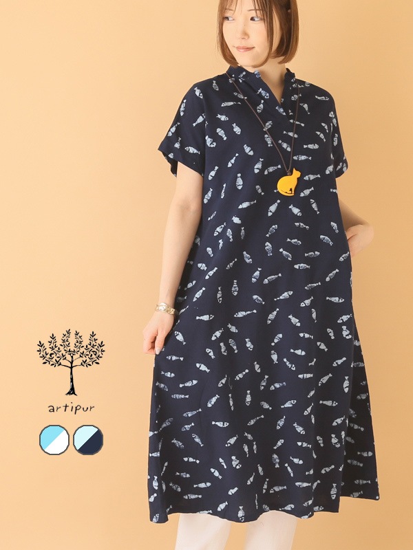 再入荷【30%OFF】ホワイト1点限り/おさかなプリントコットン ワンピース