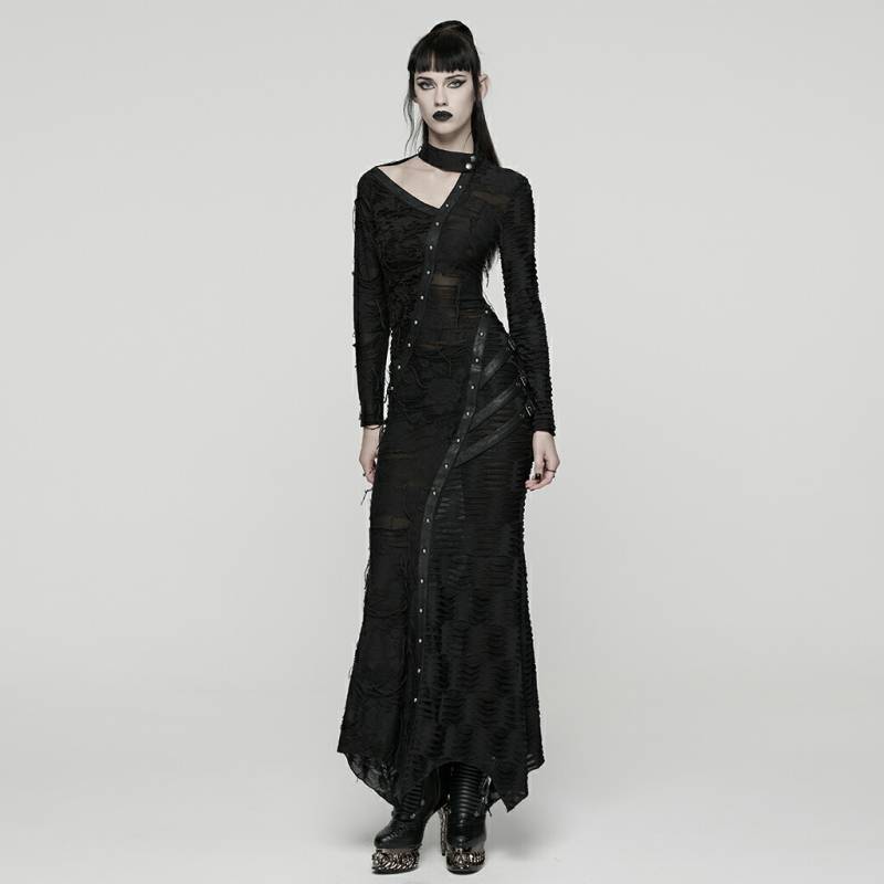 glareshop グレアショップ「S/L/2XL」WX956-B■パンクアシンメトリーデカダンスフィッシュテールメイドドレス 黒...