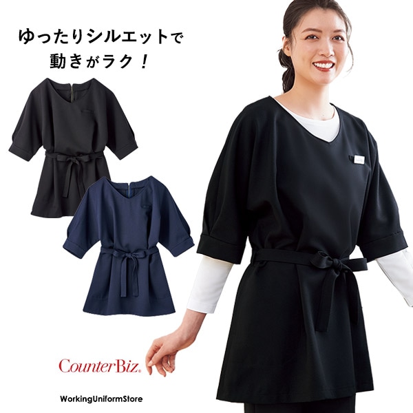 カウンタービズ制服 チュニックシャツ 7744 ストレッチエコサテン エステ 受付