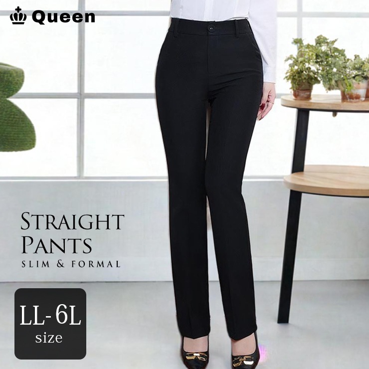 大きいサイズ レディース パンツ スラックス 黒 オフィス ウエストゴム 通勤 事務服 スーツ 制服 LL 3L 4L 5L 6L...