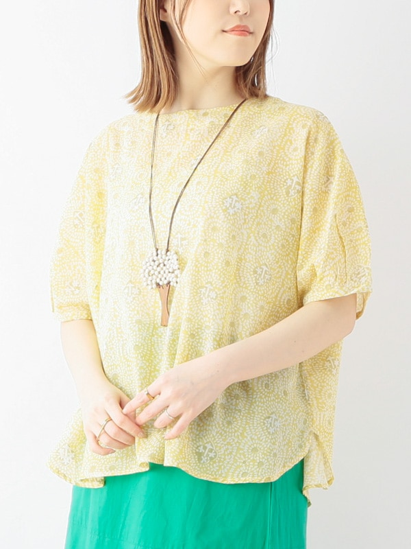 【20%OFF】イエロー1点限り/カラフルブロックプリントコットン ブラウス
