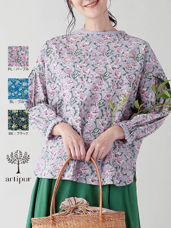 【30%OFF】ブルー1点限り/フローラルブロックプリント 2Wayブラウス(3カラー)