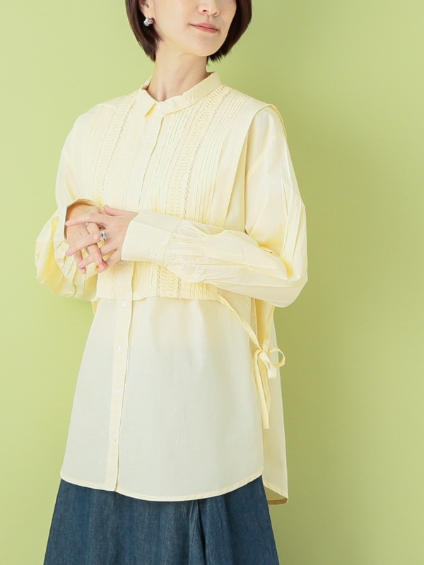 【50%OFF】イエロー1点限り/ピンタックコットン ロングシャツ 23S024