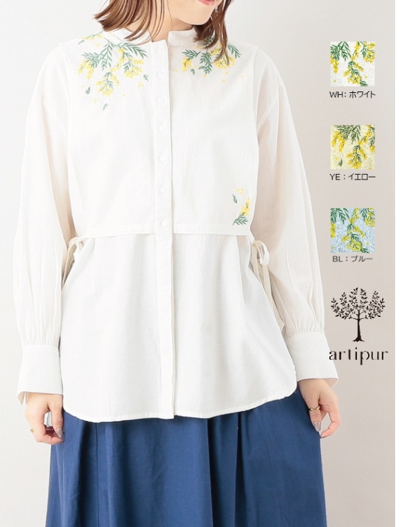 【50%OFF】ミモザ刺繍コットンリネン ロングシャツ(3カラー)