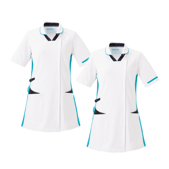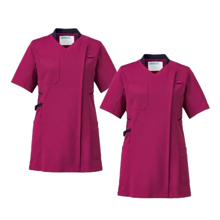 [KAZEN] 996 レディススクラブジャケット半袖(衿付) 2枚セット