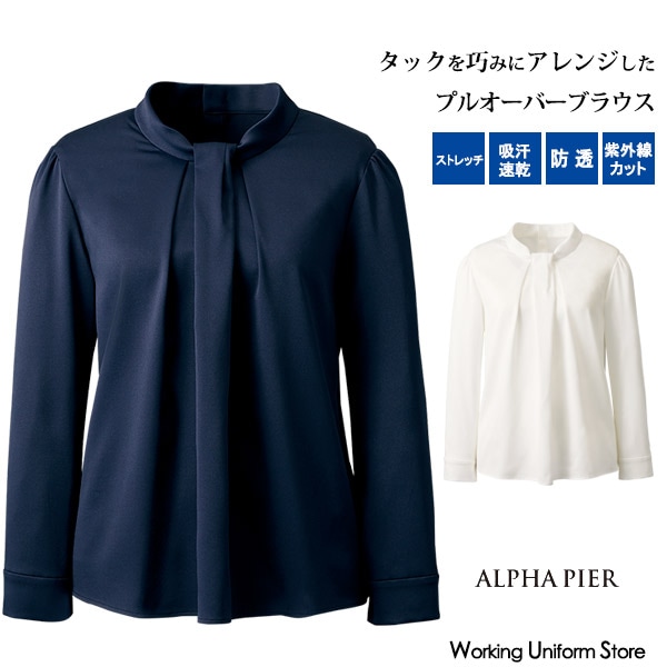 事務服 制服 九分袖プルオーバーブラウス NF1041 パウダリーストレッチサテン アルファピア