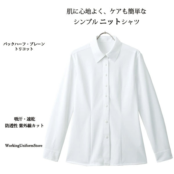 事務服 【形態安定 伸縮性】 長袖シャツブラウス AR1488 バックハーフプレーントリコット アルファピア