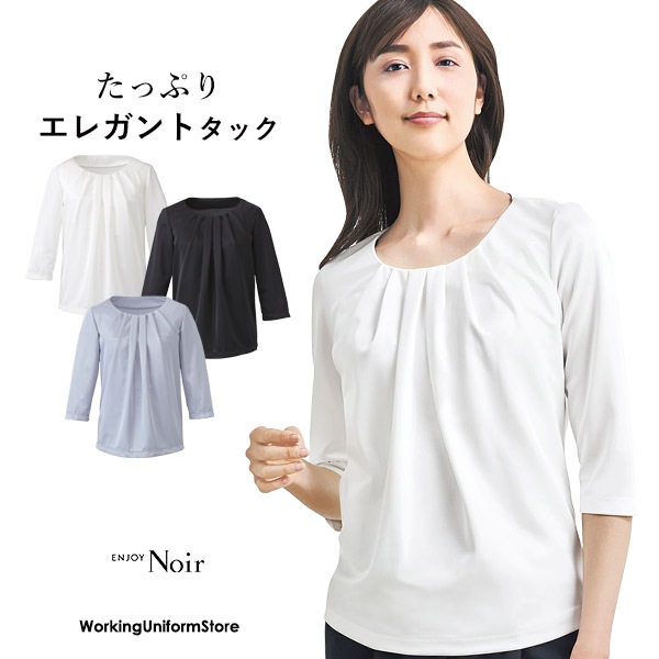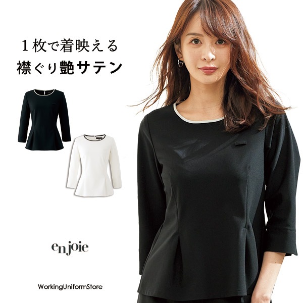 事務服 七分袖プルオーバー EWT535 サテンスムース エンジョイenjoy