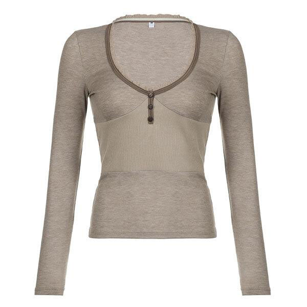 【セール】即納 安い レディース キーネック 長袖Tシャツ 5カラー 5サイズ 長袖カットソー キーネックデザイン シンプル 無地...