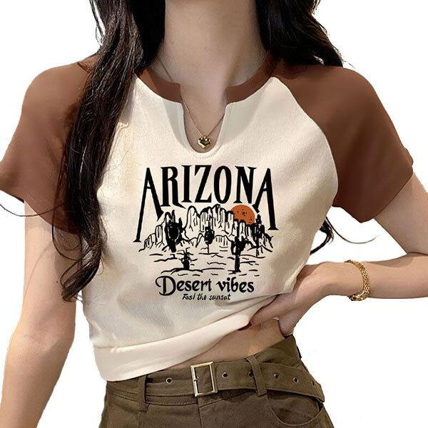 【セール】即納 安い レディース キーネック Tシャツ カットソー ショート丈 トップス 半袖 キーネック クロップド丈 タイト ...