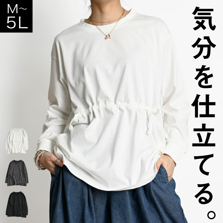 Tシャツ カットソー 長袖 レディース ロンT 気分を仕立てる。ウエストドロストカットソー 大きいサイズ トップス チュニック 体...