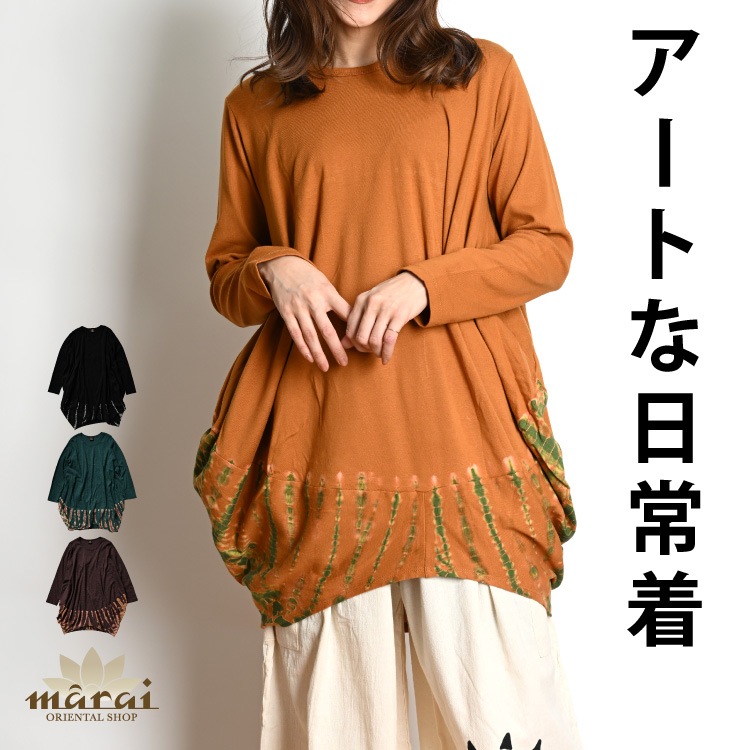 アートな日常着。タイダイコクーンチュニックカットソー タイダイチュニック チュニック レディース カットソー プルオーバー コクー...