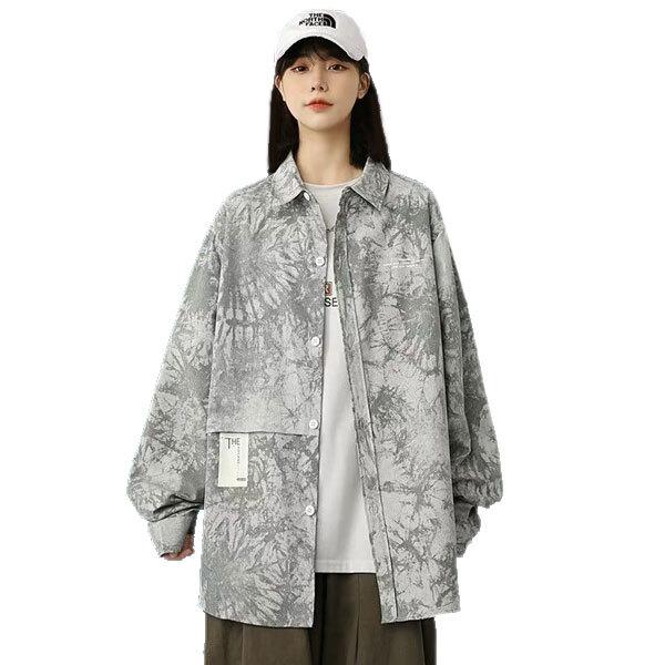 総柄プリント シャツ 6サイズ M-4XL レディース トップス ブラウス 長袖 オーバーサイズ アウター タイダイ柄 ストリート...