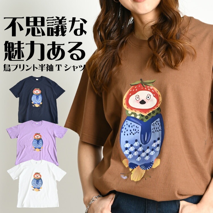 【期間限定10%OFF】不思議な魅力ある鳥プリント半袖Tシャツ Tシャツ メンズ レディース 半袖 カットソー 半袖Tシャツ 半袖...
