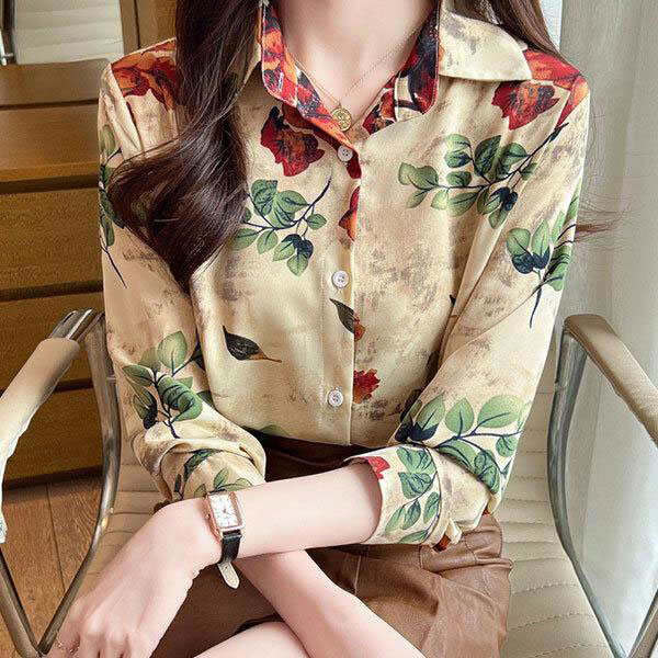 レディース 長袖 シャツブラウス ワンカラー 4サイズ レトロ感 上品さ 花模様 袖口&裾 スリムシルエット 肌触り良い素材 ハイ...