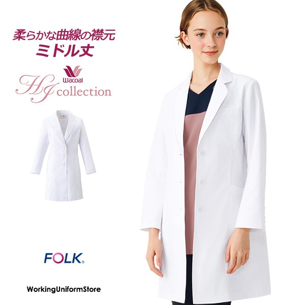医療白衣 女性用ドクターコート HI400 メディサフェイス ワコールHIコレクション フォークFOLK