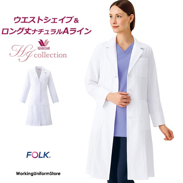 医療白衣 女性用ドクターコート HI401 エスティナストレッチ ワコールHIコレクション フォークFOLK