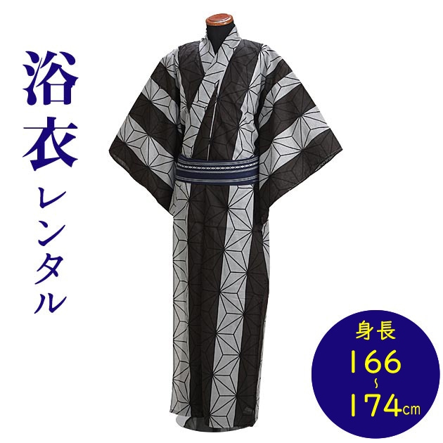 【浴衣 メンズ レンタル】ゆかたレンタル 3点セット☆浴衣・帯・下駄☆nt-my140 黒色/縞