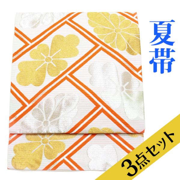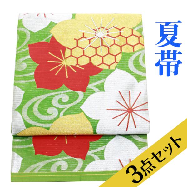 〔夏帯 名古屋帯 レンタル〕帯揚げ+帯〆3点セット 絽 帯 夏帯 名古屋帯レンタル お出かけ ro-a80