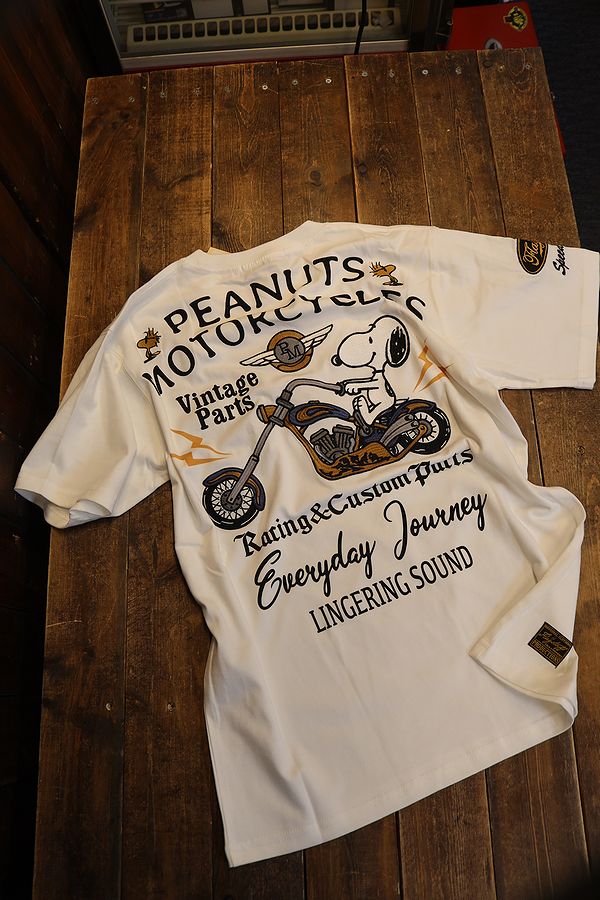 FLAG STAFF フラッグスタッフ×Snoopy スヌーピー 412006 天竺半袖Tee 刺繍 半袖Tシャツ バイク ホワイ...