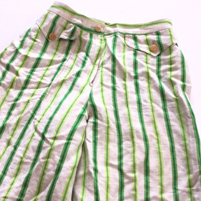 ronce ロンス キュロットパンツ 昭和レトロ 送料無料 レディース 40/生成x緑系 ストライプ カジュアル スポーツ ショー...