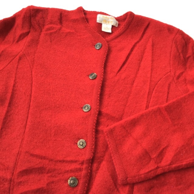 ウールジャケット ニットセーター アメリカ直輸入 送料無料 レディース S/赤・レッド 無地 プレーン 金物ボタン ウールカーディ...