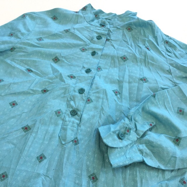 アメリカ古着 長袖ブラウス チュニック 送料無料 レディース S-M/グリーン系 総柄 ポリシャツ カジュアル USA 輸入品 古...