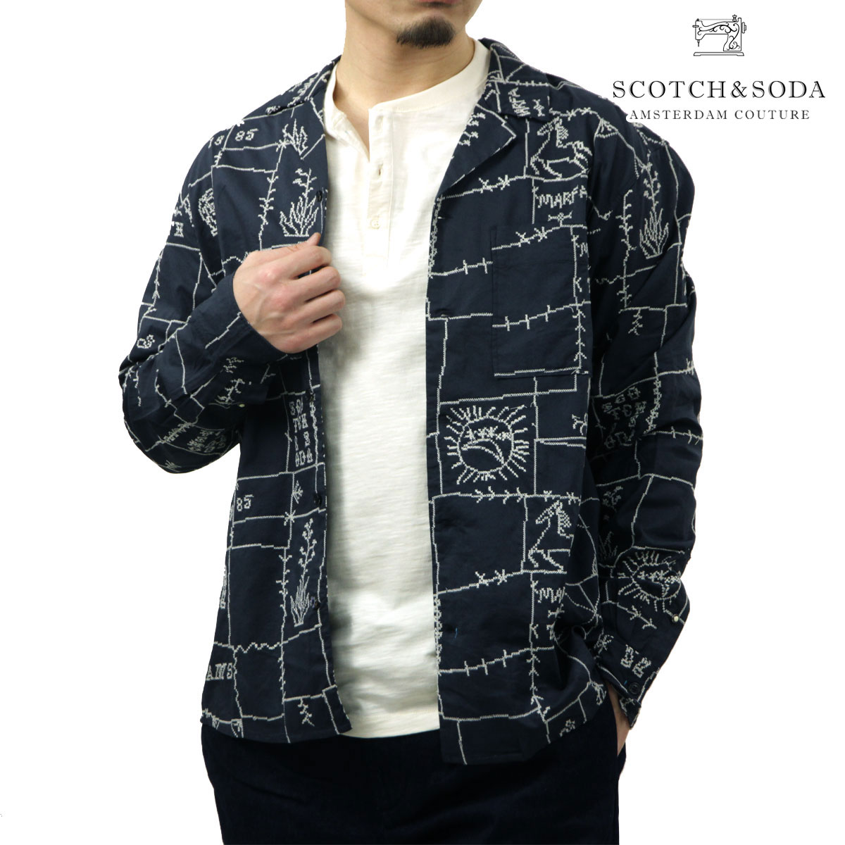 スコッチアンドソーダ メンズ 開襟シャツ 正規販売店 SCOTCH&SODA 長袖 カジュアルシャツ ALLOVER EMBROI...