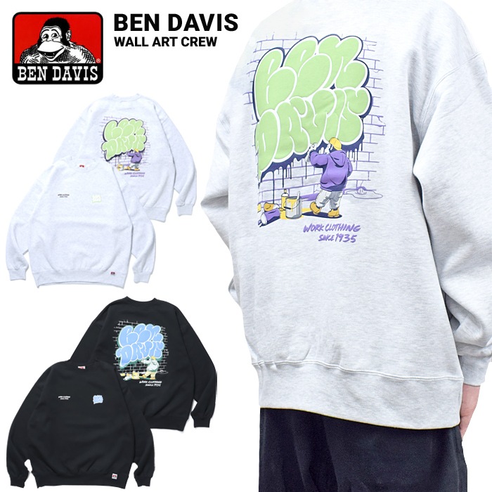 BEN DAVIS ベンデイビス スウェット WALL ART CREW SWEAT トレーナー フリース M-XL ブラック グ...