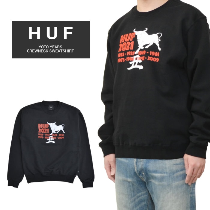 HUF ハフ スウェット YOTO YEARS CREWNECK トレーナー フリース メンズ S-XL ブラック PF00409...
