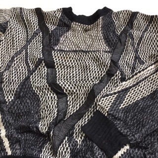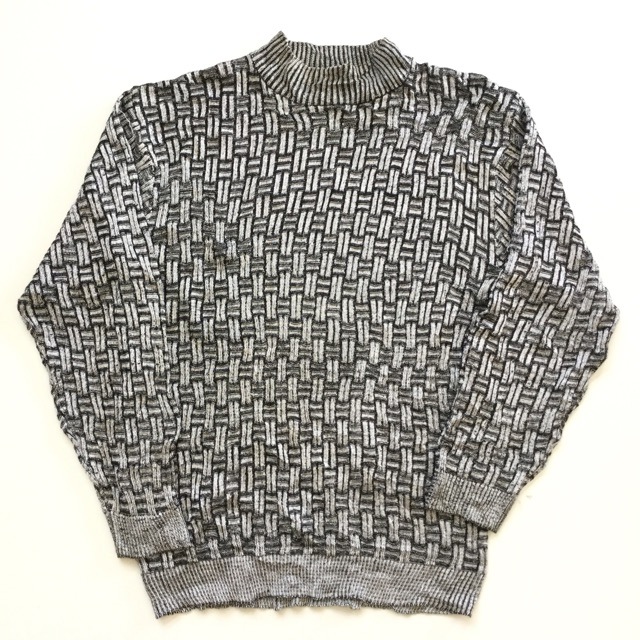 SYLLABLES モックネックセーター アメリカ古着 ハイネック 送料無料 メンズ XL/黒x銀 立体編み 3D レーヨン混ニッ...