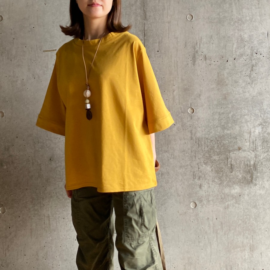 USAコットン ボートネックワイドスリーブプルオーバー_マスタード