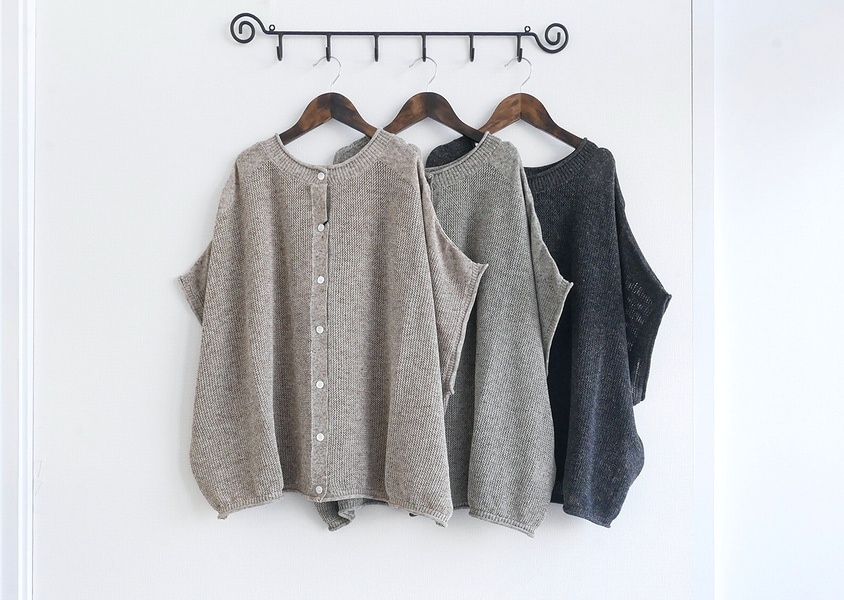 【YURK(ユルク)*LINEN MIX KNIT 鹿の子編み前後2WAYカーディガン(3色)】
