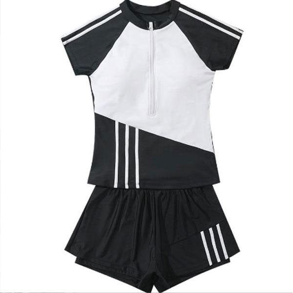 レディース セパレートタイプ スポーティー 水着 半袖 スイムウェア フロントジッパー 耐久性 速乾性 ストレッチ性 体型カバー ...