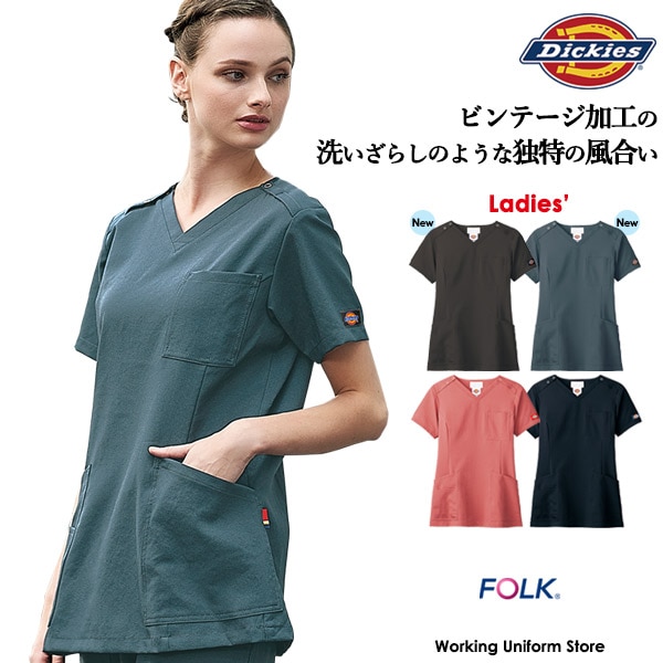 医療白衣 ディッキーズ レディース スクラブ 7071SC ビンテージストレッチ フォーク