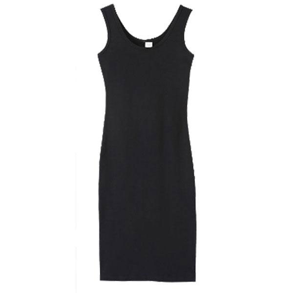 レディース タンクトップワンピース 膝丈 ノースリーブ タイト 重ね着 透け防止 インナーワンピース スリムフィット シンプル 無...