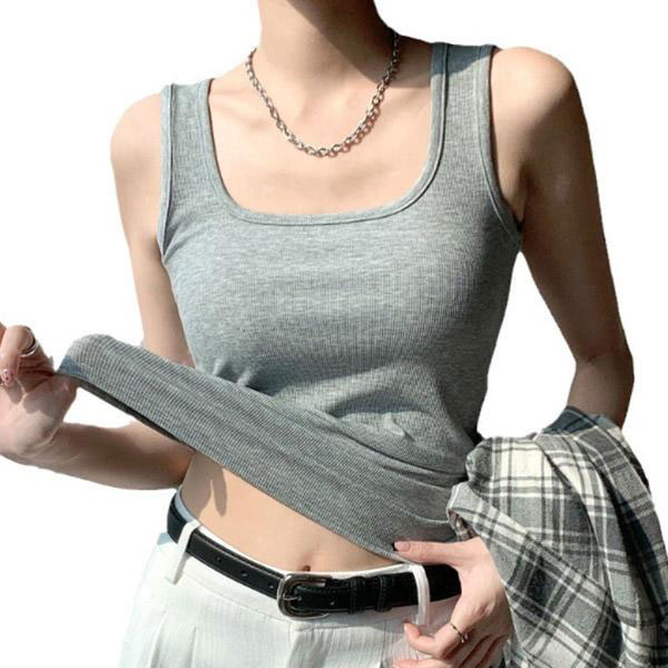 レディース スクエアネック リブ タンクトップ ノースリーブ キャミソール トップス 通気性 伸縮性 スリムフィット エクササイズ...
