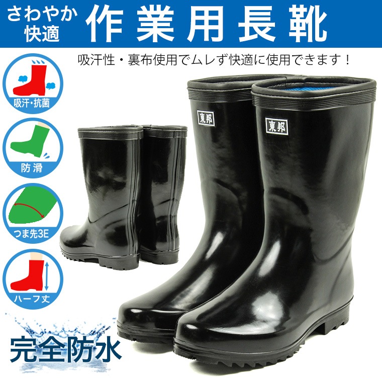 レインブーツ メンズ 作業用 軽半 長靴 黒 農作業 田植え 造園 ガーデニング 潮干狩り 釣り 吸汗性 作業用長靴 農業 メリヤ...