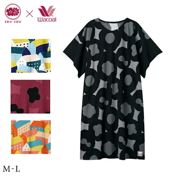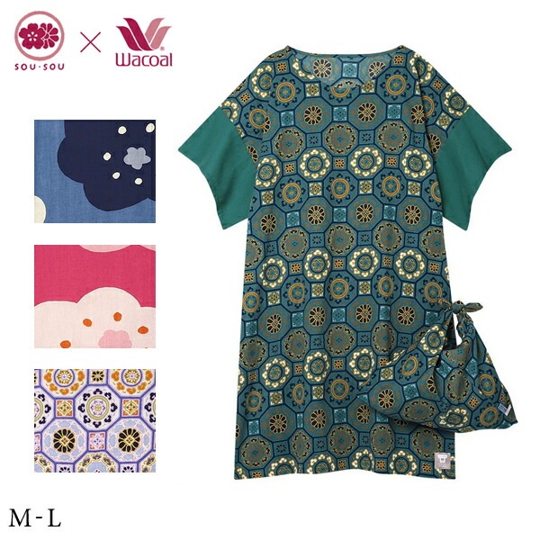 ワコール ルームウェア SOU・SOU ワンピース RNT214 M-L 綿100% 6分袖 [接触冷感性]