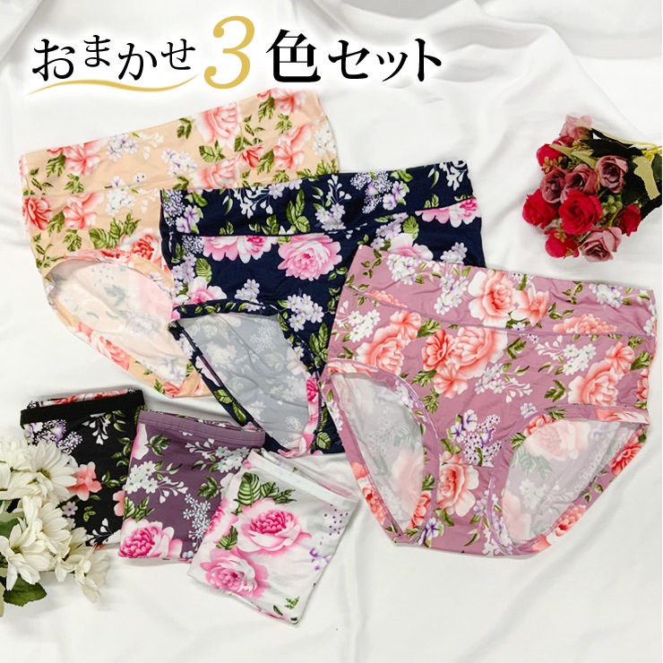 ショーツ 3枚セット 大きいサイズ レディース 下着 ハイウエスト 花柄 深履きショーツ (s0577-3)
