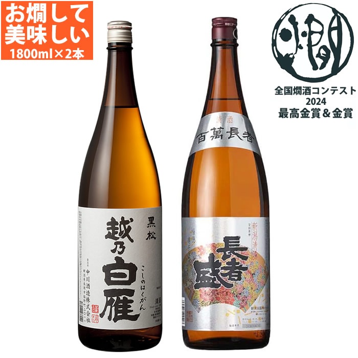 燗して美味しい日本酒 飲み比べセット 1800ml 2本 全国燗酒コンテスト2024 最高金賞&金賞セット 越乃白雁 黒松 長者盛...