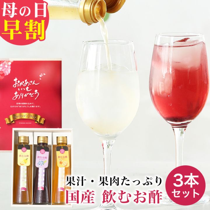 \300円OFFクーポン配布中/ 母の日 ギフト 健康飲料 飲むお酢 フルーティde酢 3本セットみかん、柚子、ブルーベリー送料無...