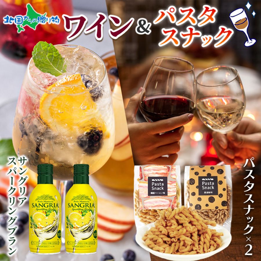 【年内終了 1/6(火)以降順次出荷予定】モンデ酒造 サングリアスパークリングブラン 2本& パスタスナック2種 (ベーコン/黒コ...