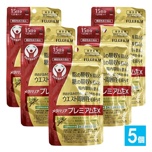 訳あり【機能性表示食品】メタバリアプレミアムEX 120粒×5個セット【FUJIFILM】脂も、糖も、吸収は抑える。【大量仕入れに...
